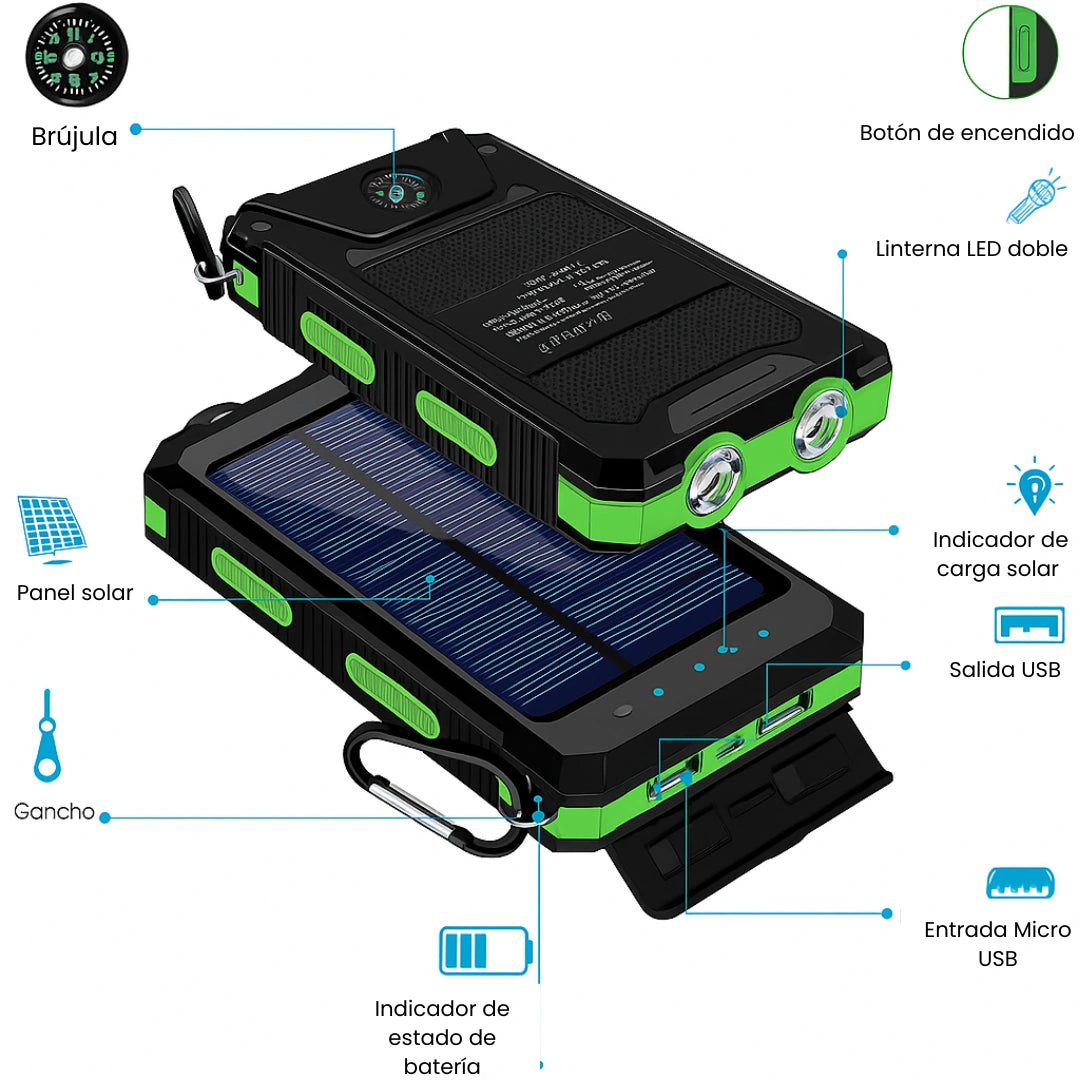 aprovecha la luz del sol para cargar en cualquier lugar, incluso sin enchufes.